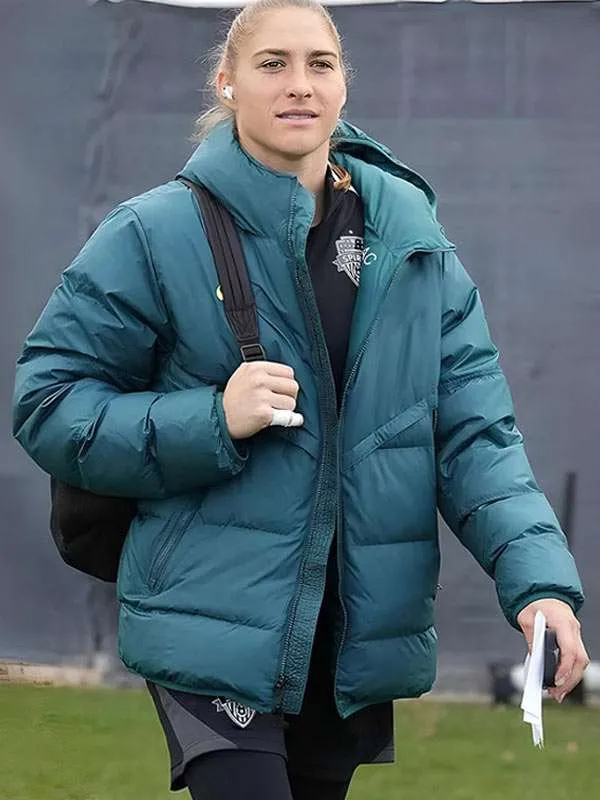 American Soccer Player Aubrey Kingsbury Blue Puffer Hooded Jacket