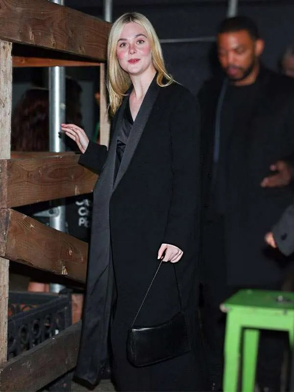 NYC 2025 Elle Fanning Black Long Wool Coat