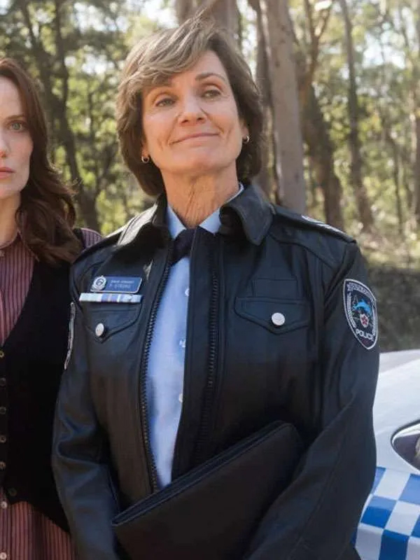Catherine McClements Return to Paradise 2025 Philomena Strong Black Leather Jacket